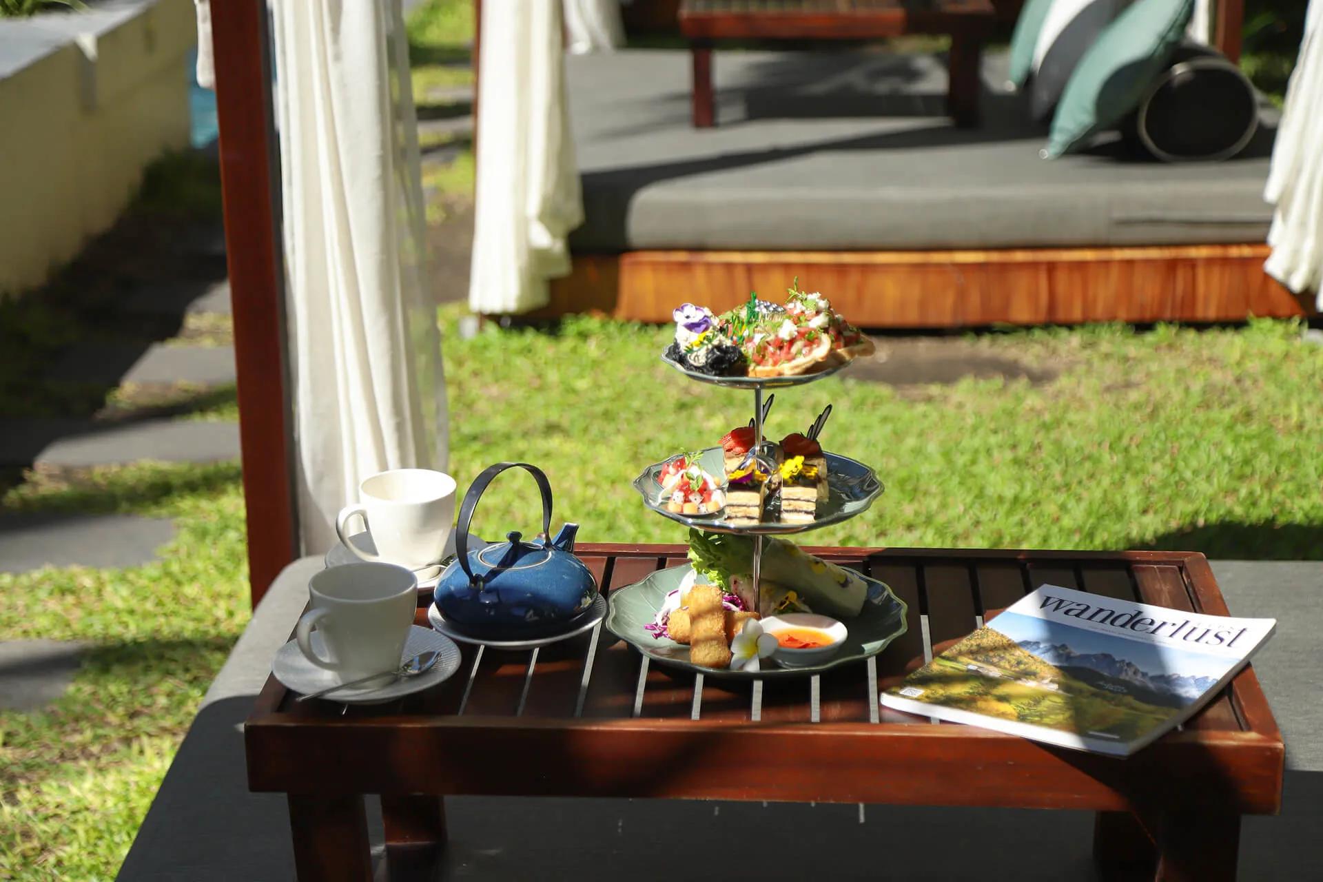 Khoảnh khắc buổi chiều tại Almanity trở nên thi vị hơn khi bạn thưởng thức một tách trà ấm cùng bánh ngọt thủ công trong không gian xanh mát. Dịch vụ trà chiều được phục vụ tại khu vườn hoặc bên hồ bơi,  nơi bạn có thể lắng nghe tiếng gió, tiếng chim và cảm nhận sự an yên lan tỏa.