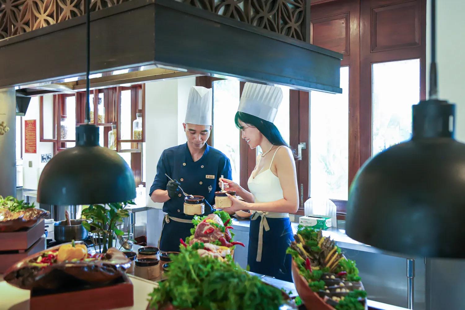 Tham gia vào một lớp học nấu ăn được thiết kế riêng, ngay trong không gian bếp mở ngập tràn ánh sáng và nguyên liệu tươi ngon tại resort.