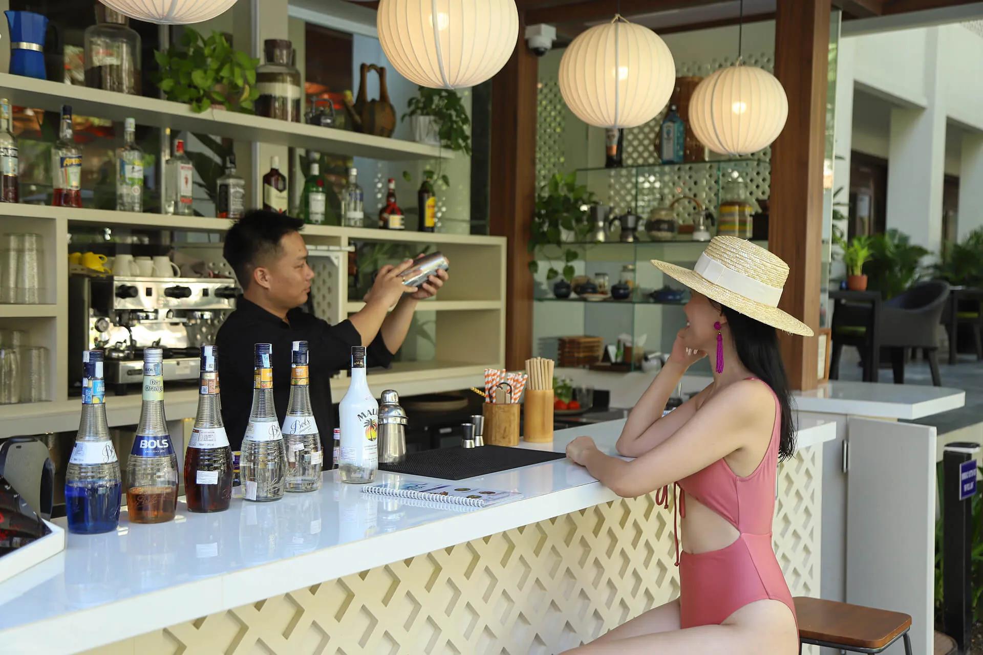 Tại Almanity Hội An Resort & Spa, quầy bar ngoài trời là điểm hẹn lý tưởng để bạn thưởng thức các loại đồ uống thủ công độc đáo, từ cocktail nhiệt đới đến nước ép thanh lọc cơ thể, tất cả được pha chế bởi các bartender chuyên nghiệp, mang đến trải nghiệm ẩm thực trọn vẹn giữa thiên nhiên và ánh nắng miền nhiệt đới.